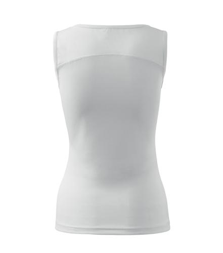 Dámsky top so širšími ramienkami a elegantným lodičkovým výstrihom. Voľný priekrčník a prieramky začistené lemom zo základného materiálu. Členiace švy na prednom aj zadnom diele zdobia top v sedlovej časti. Mierne zúžený strih s bočnými švami. Vďaka použitému tvarovanému vláknu vhodný na šport aj celodenné nosenie. Vhodný na sublimačnú potlač, bežné druhy potlače a výšivky.