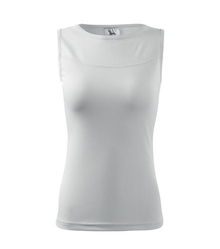 Dámsky top so širšími ramienkami a elegantným lodičkovým výstrihom. Voľný priekrčník a prieramky začistené lemom zo základného materiálu. Členiace švy na prednom aj zadnom diele zdobia top v sedlovej časti. Mierne zúžený strih s bočnými švami. Vďaka použitému tvarovanému vláknu vhodný na šport aj celodenné nosenie. Vhodný na sublimačnú potlač, bežné druhy potlače a výšivky.