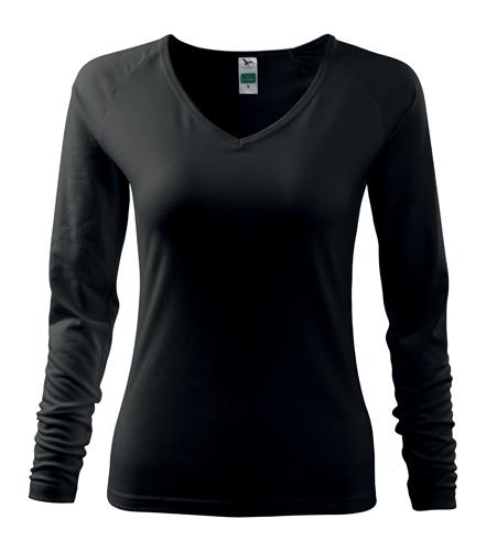 Kvalitné dámske tričko vysokej gramáže. Priekrčník v tvare V. Dlhý raglánový rukáv. Zúžený strih zvýrazňujúci dámsku siluetu. Vďaka prídavku elastanu drží tvar.